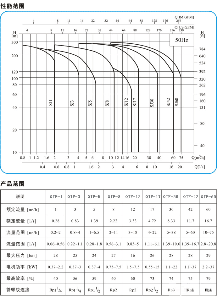 | 100QJ 8-50 | 198 | 8 | 7.5 | 2850 |