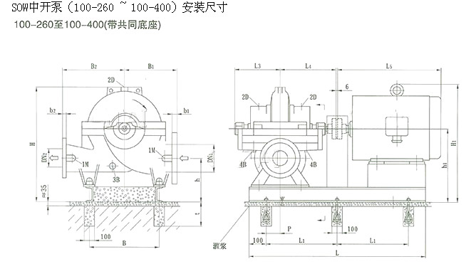 結(jié)構(gòu)緊湊、穩(wěn)定性好。SOW蝸殼式單級雙吸離心泵為泵殼中開結(jié)構(gòu),進(jìn)出口均在泵體上,檢修時只需吊出泵蓋,轉(zhuǎn)子部件便可移出進(jìn)行檢修作業(yè),而不需拆卸管路,十分方便。