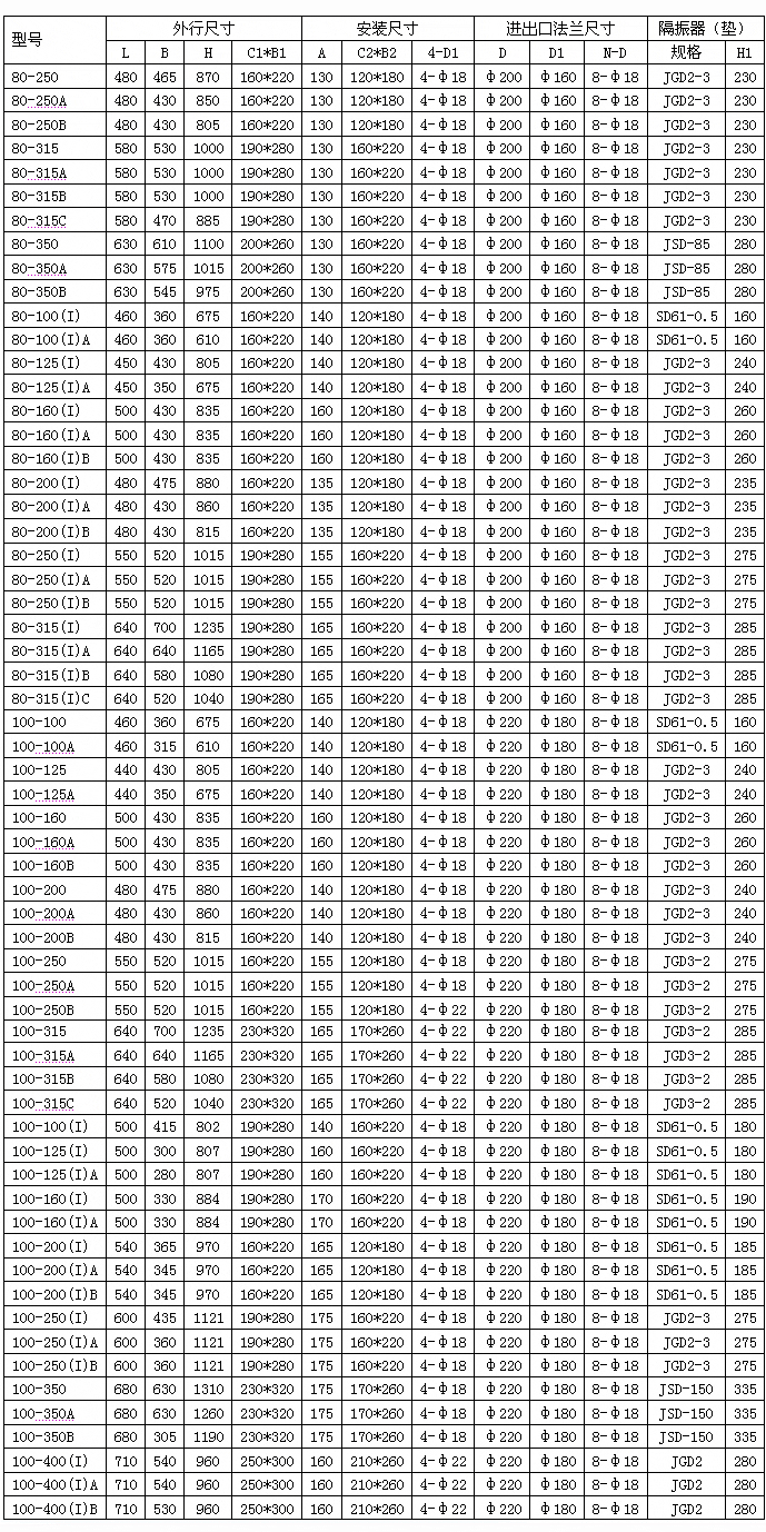 ISG、IRG、GRG、IHG、YG、ISHB型外形安裝尺寸表: