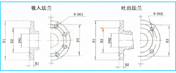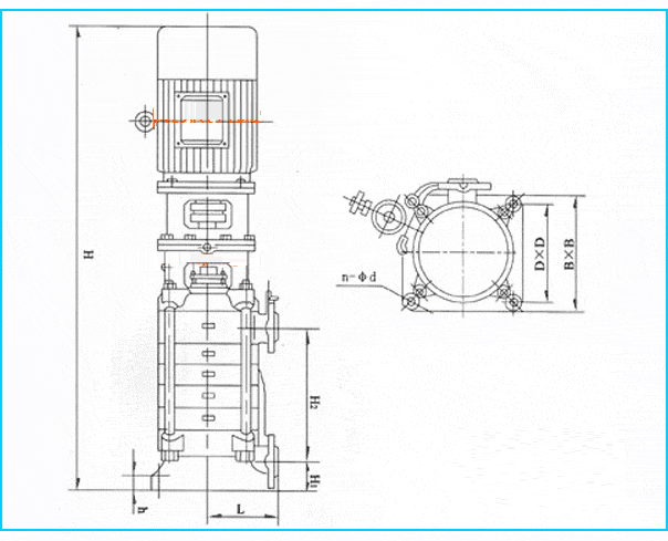 DL型立式多級離心泵法蘭安裝尺寸圖: