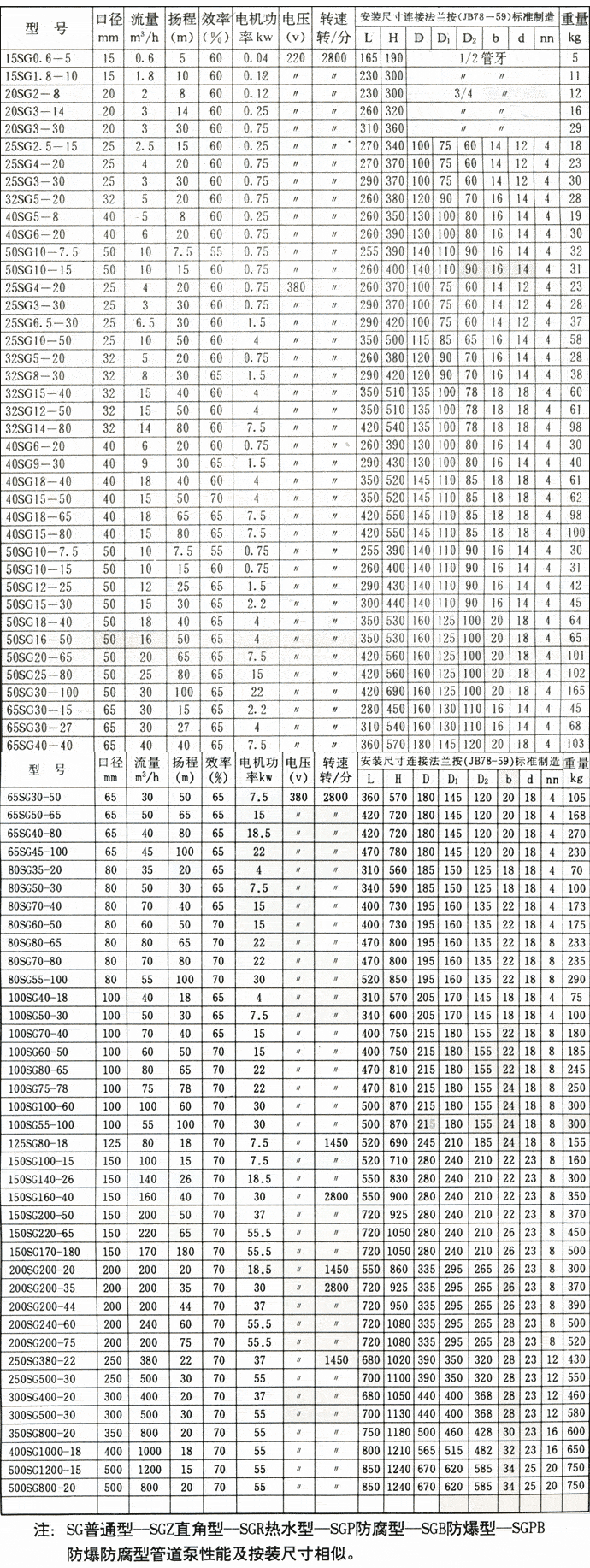 | 65SG40-80 | 65 | 40 | 80 | 65 | 18.5 | 380 | 2800 |
