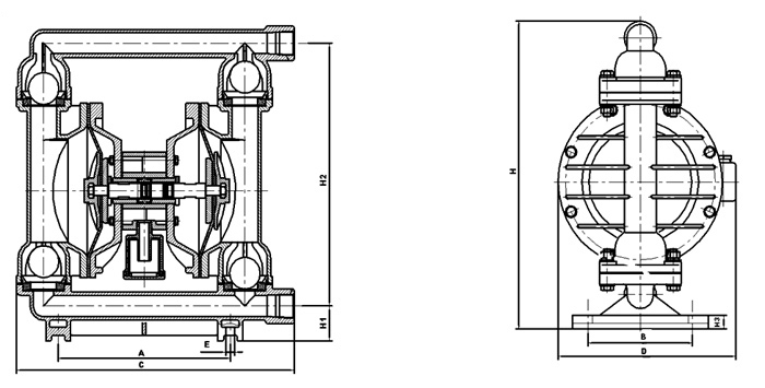 | 型號 | A | B | C | D | E | H1 | H2 | H3 | H | 螺紋 | 法蘭式 | |