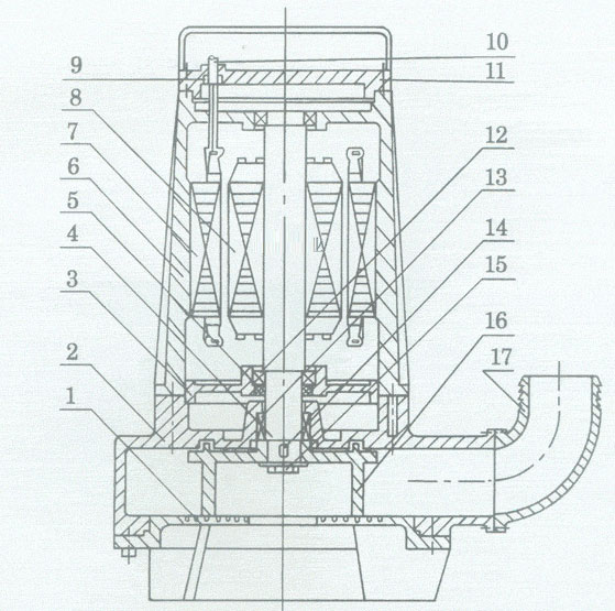 | 13 | 機(jī)械密封 | 14 | 平鍵 | 15 | 葉輪螺母 | 16 | 葉輪 | 17 | 彎管 |